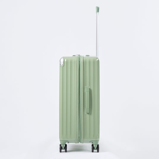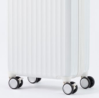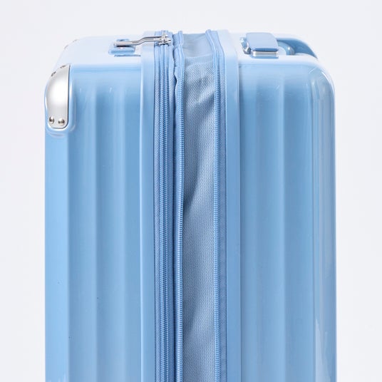 「軽量ジッパーキャリー」は、耐衝撃性に優れたポリカーボネート素材の特性を活かし軽量化をはかっています。今回、お客さまの声をもとに「軽くて、しっかり荷物が入る」をキーワードにリニューアルしました。従来品よりデッドスペースを少なくしたシルエットに変更することで 同サイズでの容量アップ、キャスターなどのパーツを軽量化することで1Lあたりの重さはトップバリュ史上最軽量※2)を実現しました。機能面では旅先で荷物が増えた時に役立つ“拡張機能”と、不意な動き出しを防ぐ“ストッパー付き双輪キャスター”など、キャリーケースに求められる便利な機能を搭載しています。さらにデザイン面にもこだわり、カラーを4色展開から6色展開※3)に増やし、コーナーパッドとホイールカバーを新たに付けました。