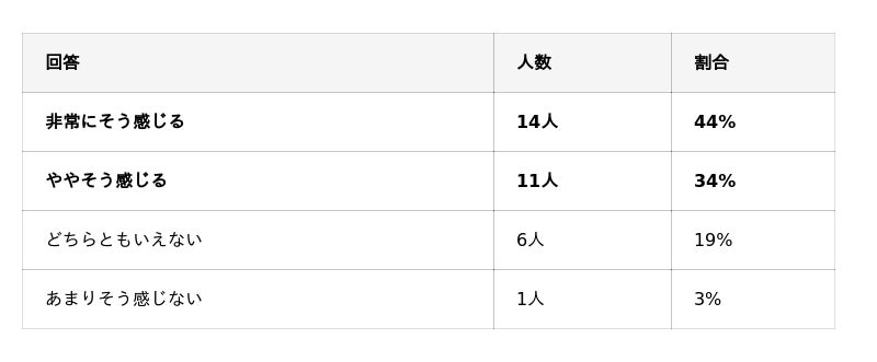「そう感じる」計:25名(78%)