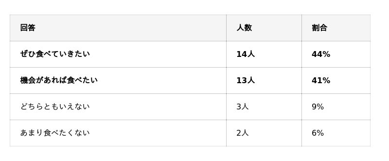 「食べたい」計:27名(84%)