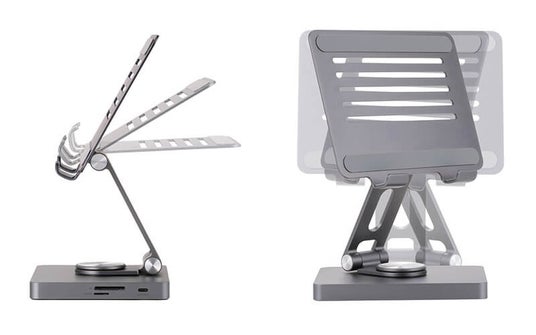 ドッキングステーション機能を備えた、アルミ筐体のタブレットスタンド