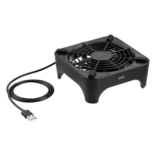 12cmファンと約13×13cmの天板サイズを採用したコンパクト設計により、省スペース環境でも設置が可能。デスク周りや棚の中など限られたスペースにもフィットします。