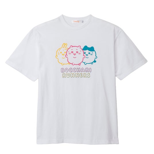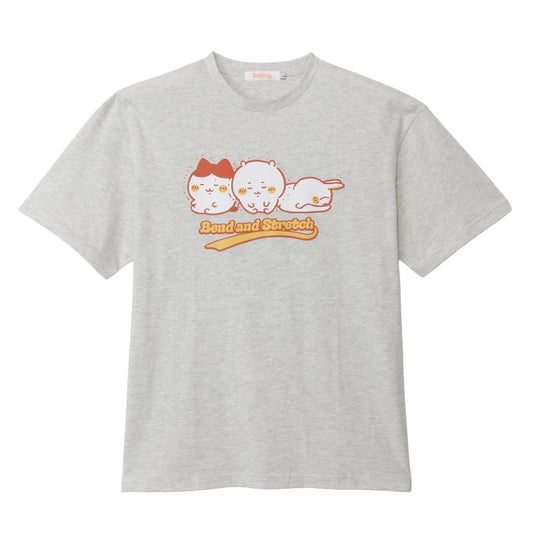 入念にストレッチする姿が愛らしい!ぷるぷる頑張るちいかわとハチワレに、余裕綽々なうさぎ。やさしいカラーリングでカジュアルコーデに取り入れやすいデザインです。