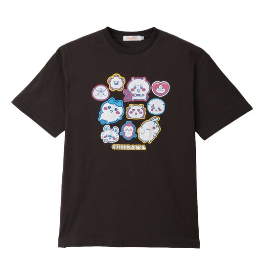 色んなキャラクターが大集合!まるでステッカーをペタペタ貼ったようなトレンド感があふれるキャッチーなデザイン。スミクロのボディカラーでPOPなプリントでも着やすい配色に。