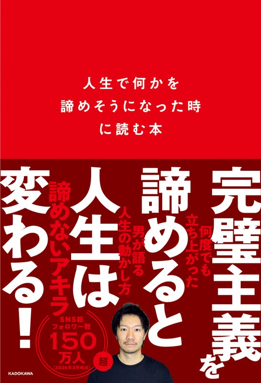 株式会社KADOKAWA(本社:東京都千代田区、取締役 代表執行役社長 CEO:夏野剛、以下KADOKAWA)は、SNS総フォロワー数150万人超の人気クリエイター・諦めないアキラによる初の書籍『人生で何かを諦めそうになった時に読む本』を2026年4月21日(火)に発売しました。