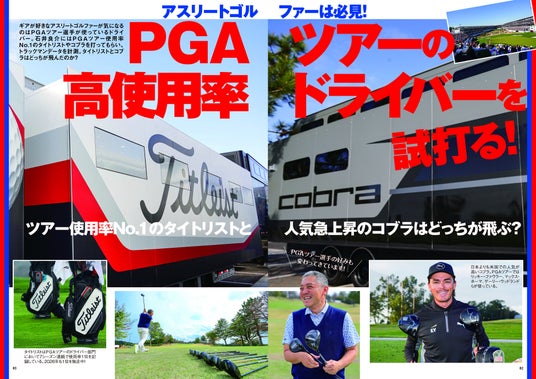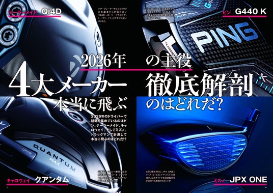 巻頭は「キャロウェイ」、「テーラーメイド」、「ピン」、そして今シーズン注目のミズノ「JPX ONE」の特集。今年も多くのモデルが存在する外ブラ御三家の飛距離性能と「ビヨンドマックス」効果で売り切れ続出の「JPX ONE」の実力は?