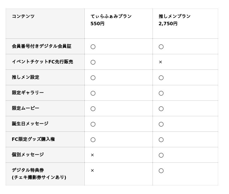 ファンクラブでは、イベントのチケット先行販売や推しメン本人から届く個別メッセージ、推しメン設定、ギャラリー、ムービーなどここでしか見られない限定コンテンツを展開予定です。