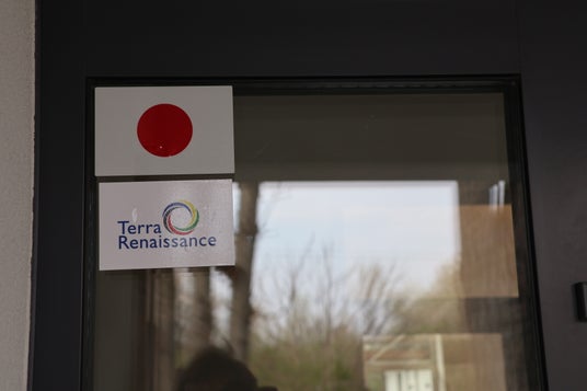 施設には日本への感謝をこめ、国旗とテラ・ルネッサンスの団体ロゴマークが掲示された (C)テラ・ルネッサンス