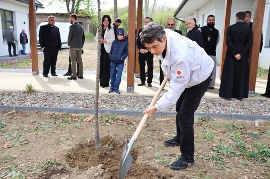 植樹式にて。やがて美しい桜と藤の花が人々の目を楽しませ、日本との交流を思い起こさせるだろう。(C)テラ・ルネッサンス