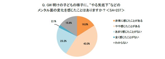 1.約6割の親がGW明けの子どもの様子にメンタル面の変化を感じたことが「ある」と回答!