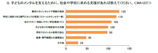 社会や学校に対し、親向けのメンタルケア情報の提供を求める声が最多に。