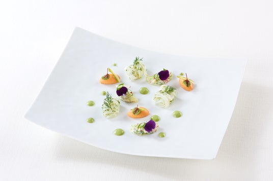 水面を走る光の粒、風にそよぐ柔らかな若葉、そして水辺で語らう人々の穏やかなひととき―。エグゼクティブシェフ ルノー・オージエがキャンバスに見立てた皿の上に、旬の食材を用いてながらその情景を描いたのが『Au bord de l'eau ~初夏の水辺~』。一皿ごとに、みずみずしい季節の素材と繊細な味わいを感じられ、日常を離れた優雅な初夏へと誘います。