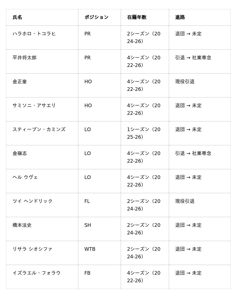 2025-26シーズンの退団選手について、下記の通りお知らせいたします。