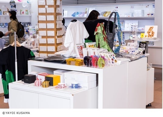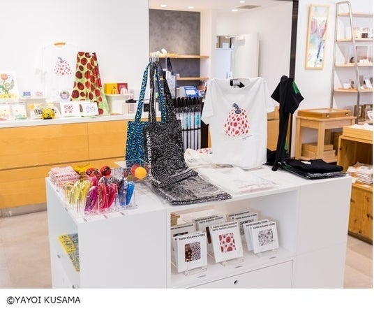 関連企画として、丸太広場 キトキでは草間作品のインスタレーション展示(11月1日まで)や、草間のインタビュー動画の公開、ショップコーナーではグッズも販売しています。