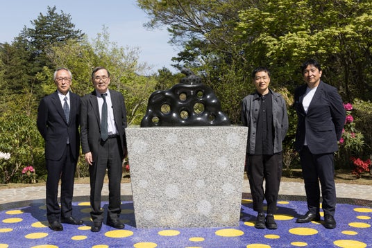 左から公益財団法人彫刻の森芸術文化財団 常務理事 玉木英二、草間彌生美術館館長 彫刻の森芸術文化財団理事 建畠晢、トラフ建築設計事務所 鈴野浩一、彫刻の森芸術文化財団 東京事業部 部長 坂本浩章