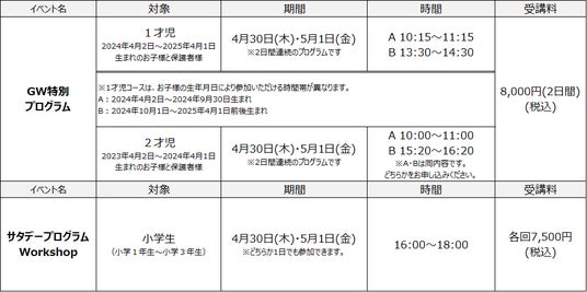 1才児・2才児「GW特別プログラム」