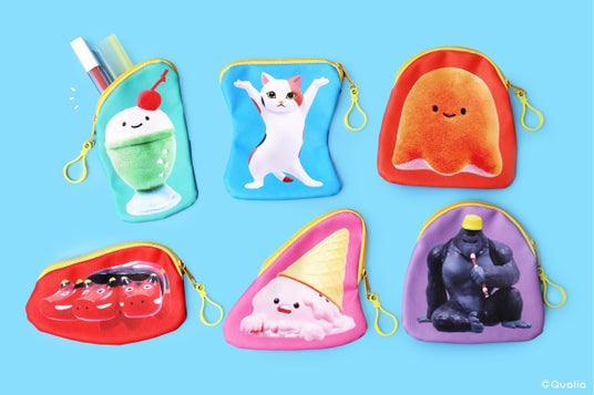 Qualiaの人気商品がプリントされた実写ポーチ。 最大約15cm×15cmと化粧品もたっぷり入るビッグサイズです!