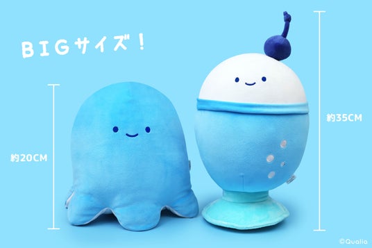 「ネコのペンおき」「神獣ベコたち」が、約2倍サイズのソフビフィギュアとして登場いたします。また、「にっこりーノ」もQualiaカラーのライトブルー生地を使用した特別仕様のぬいぐるみとして展開予定です。