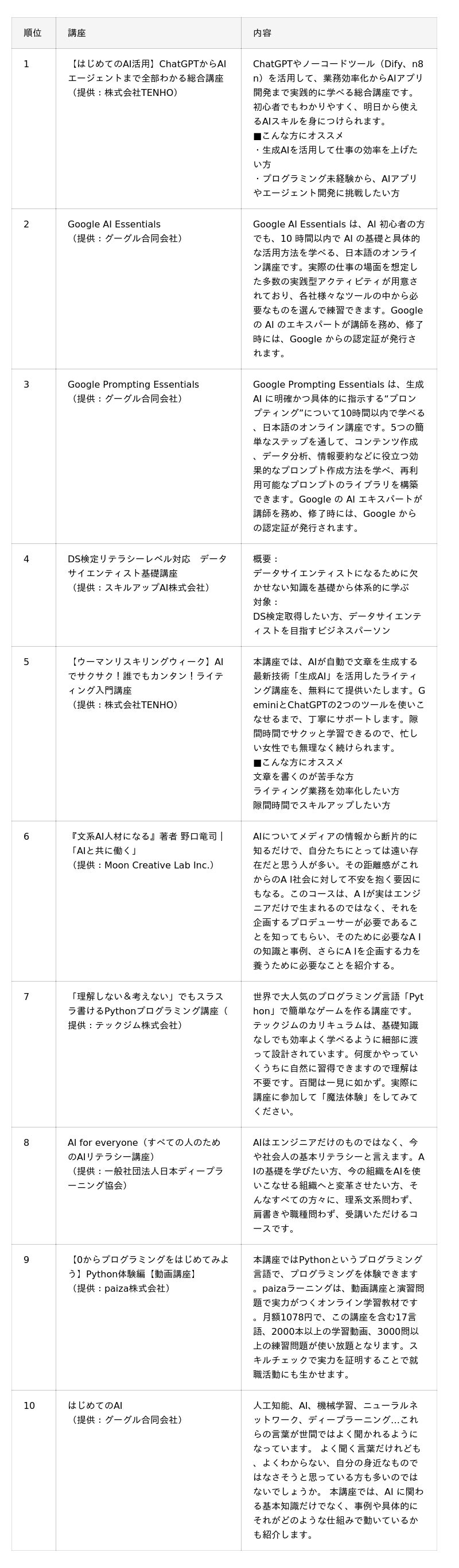 コンソーシアム発足から3年10ヶ月|人気のAI講座をランキング形式で紹介