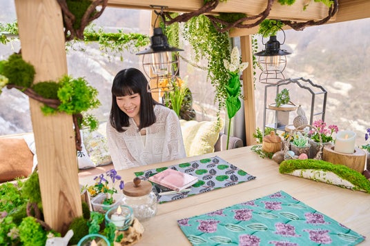 谷川岳ヨッホの22人乗りゴンドラは国内でも3台のみで、他のゴンドラと比べてゆったりとくつろげるのが特徴です。ゴンドラの一部が、期間限定で特別な「ボタニカルゴンドラ」に変身します。車内はアーティフィシャルフラワー作家・GEOCOLORによる精巧な高山植物を模した作品を展示します。開花時期や場所が異なる高山植物を、ボタニカルゴンドラでは一度に眺めることができるのも醍醐味です。さらに、カーテンやクッション、ランチョンマットに至るまで植物をモチーフとした装飾を施しました。車内のテーブルやイスには、みなかみ町でイヌワシ保全のために森の環境整備を行った際に出た間伐材「イヌワシ木材」を使用。温かみと趣のある質感と木の香りが心地よい空間に設えています。窓外に広がる谷川岳の絶景と、谷川岳にちなんだ春の花々に囲まれたプライベート空間で、非日常な空中散歩をお楽しみいただけます。