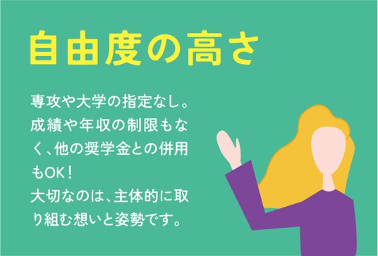奨学金特徴 -高い自由度と可能性を重視した、給付型奨学金-