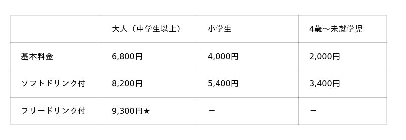 【料 金】 ※2名様より承ります。1グループ8名様までとさせていただきます。