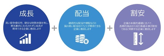●株式投資の王道:「成長」+「配当」+「割安」に着目し、「世界のベスト」に厳選投資日本を含む世界各国(エマージング国を除く)の株式の中から、「株式投資の王道」と考える「成長」+「配当」+「割安」に着目して、確信度の高い銘柄に厳選投資。