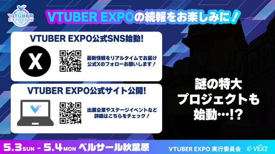 VTUBER EXPO実行委員会(幹事:株式会社VEXZ)は、2026年5月3日(日)~4日(月・祝)に東京・ベルサール秋葉原にて開催する世界初・世界最大級(※自社調べ)の体験型博覧会「VTUBER EXPO 2026」に関する最新情報を公開いたします。
