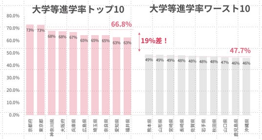 近年、日本では地域による大学進学率の差が拡大しています。「文部科学省令和5年度学校基本調査」によると、都市部と地方では進学率に約19%の差が存在し、「どこに生まれたか」によって進路の選択肢が大きく制限されている現状があります。また、東京大学においても合格者に占める「非関東圏」出身者の割合は、過去20年で14.3%減少(52.6%→38.3%)しており、地方からの挑戦が困難になっています。