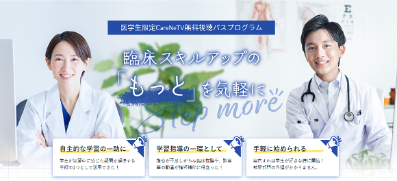 株式会社ケアネット(本社:東京都千代田区、代表取締役社長:藤井勝博、以下「ケアネット」)は、持続可能な医学教育環境の構築を支援するため、2026年度も全国の大学医学部・医科大学を対象に、臨床医学チャンネル「CareNeTV」の全3,300番組以上を無料開放する視聴パスを無償で提供いたします。