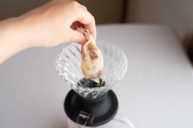 いれおわったら、フィルターを摘んで捨てるだけ。
