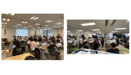 昨年帝京大学で開催した「Tornado2025」のキックオフミーティング(左)と、チームラボで開催した最終発表会
