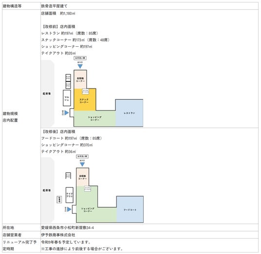 第1期工事として、令和8年5月11日(月曜)からレストランコーナーの営業を終了し、令和8年夏頃にフードコートへとリニューアルいたします。