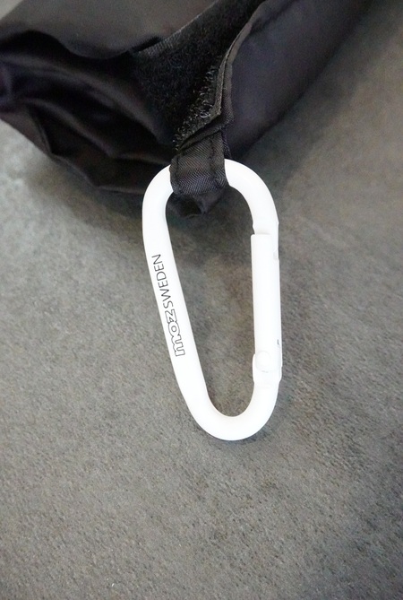 付属のカラビナに「moz SWEDEN」のロゴが入っています。細かいところだけどおしゃれでかわいいですね。