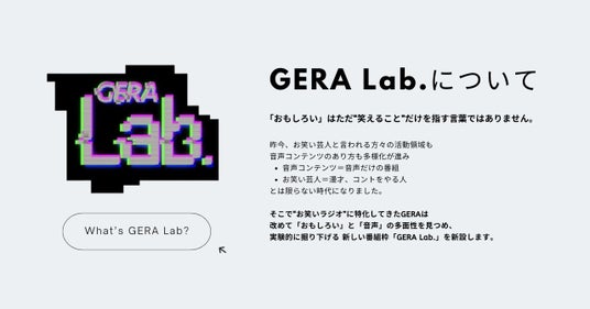 多彩な活動を展開しています。GERAとしても、パーソナリティが持つ新たな魅力や意外な一面を引き出し「“笑えるだけではない”おもしろさ」をリスナーにお届けする番組制作に