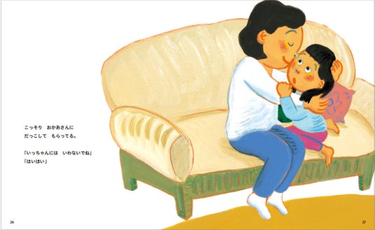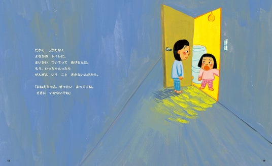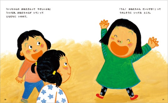 絵の依頼をいただいて、よこみちさんのお話を読んだとき、なんともほっこりとした温かい気持ちになりました。私自身は兄がいるので妹のいっちゃんの立場ですが、きっと子どもの頃の兄は、この絵本のお姉ちゃんのように我慢をしたり嫉妬をしたり、複雑な気持ちもあったのだろうな、と当時を振り返りながら、姉妹の表情を、気持ちを込めながら描きました。天真爛漫ないっちゃんと、なんだかんだ優しいお姉ちゃんのやりとりに注目していただきたいです。
