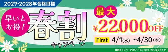 2027年・2028年合格目標の対象コースが最大2.2万円OFF!(~4/30(木))