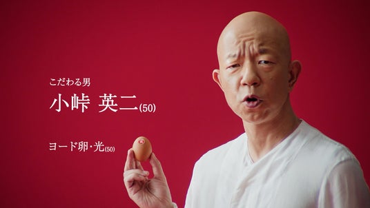 【「ヨード卵・光 コク3.5倍」篇 30秒】発売50周年を迎えた「ヨード卵・光」と、同じく50歳を迎えた小峠 英二さん。節目を重ねる両者が回転しながら美しくシンクロする様は、「ヨード卵・光」が誇るコク3.5倍の魅力を、上質かつ繊細に表現しています。その姿はまるで美術館に展示されたアート作品のよう。見る者の感性に静かに訴えかける、洗練されたCMに仕上がりました。