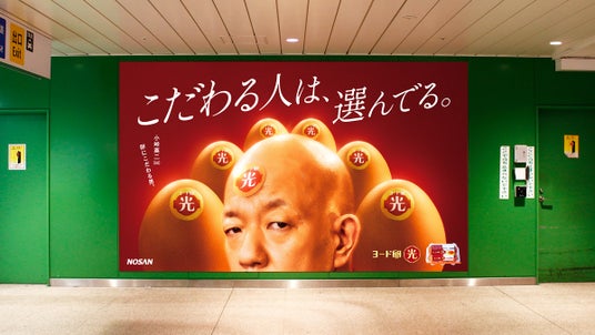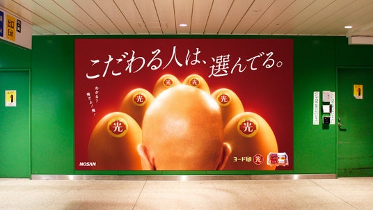 「ヨード卵・光」の50周年に合わせて、JR新宿駅東改札外GREENシートにてOOH広告を掲出しています。50周年を迎える「ヨード卵・光」と50歳を機に益々こだわりが光る小峠英二さんのインパクトある広告にご注目ください。
