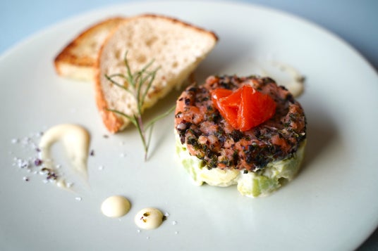 南三陸サーモンと海藻のタルタル南三陸高等学校の高校生たちが考案したコラボメニューです。