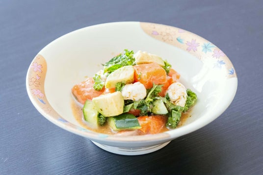 南三陸サーモンとケールの旨味が共鳴し、わさびが後味を爽やかに引き締めます。