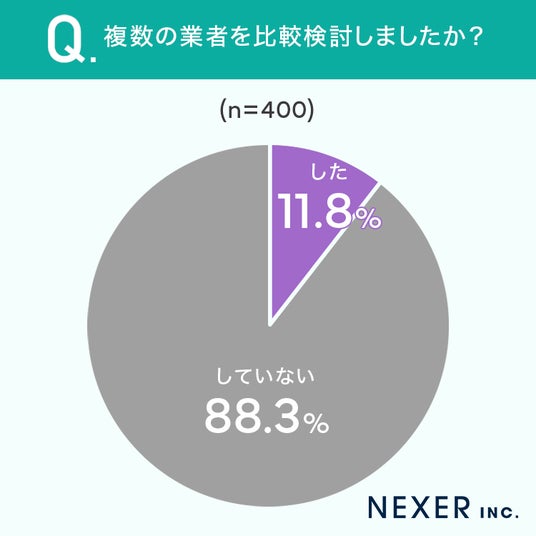その結果、複数の業者を比較検討「した」と答えた方は11.8%にとどまり、「していない」が88.3%と圧倒的多数を占めました。