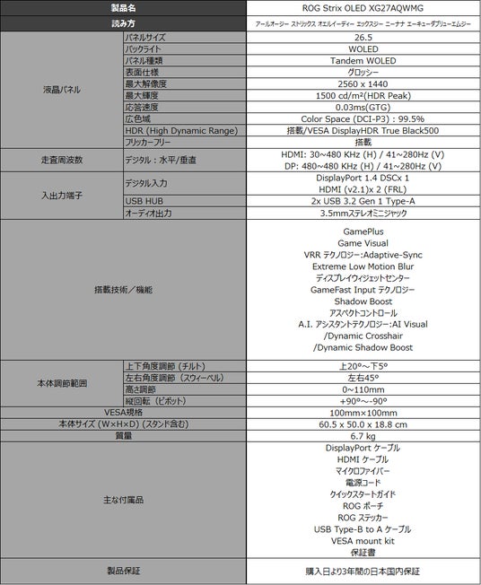 製品詳細:https://rog.asus.com/jp/monitors/27-to-31-5-inches/rog-strix-oled-xg27aqdmg/