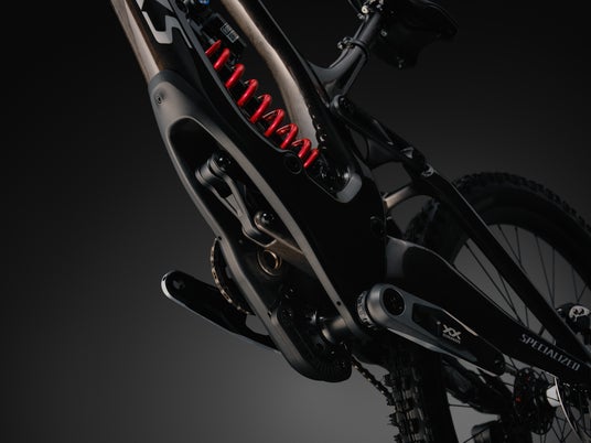 最終的にリアホイールを駆動するチェーンリングを精密に配置することで、チェーンによる力はサスペンションから切り離され、サスペンションはストローク全域にわたって完全にアクティブに機能します。ペダルキックバックを生むことなく、後方へのアクスルパスを最適化。角の立った障害物もクリーンに吸収し、勢いを維持します。スピードもリスクも最大になる場面で、ライダーは常に冷静さを保つことができます。