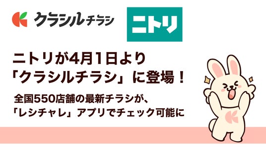 クラシル株式会社(本社:東京都港区、代表取締役社長:堀江 裕介)が提供する小売向けデジタル販促ツール「クラシルチラシ」は、2026年4月1日(水)より、家具・インテリア業界大手の株式会社ニトリにおいて本導入にいたりましたことをお知らせいたします。