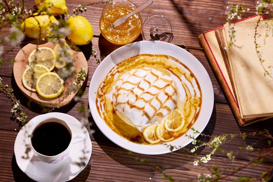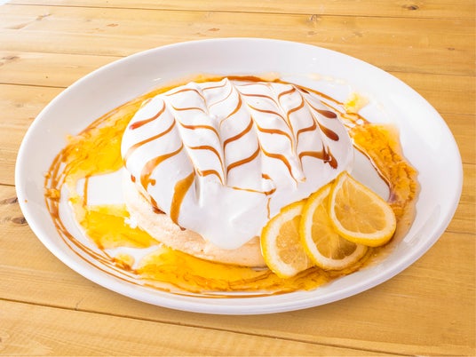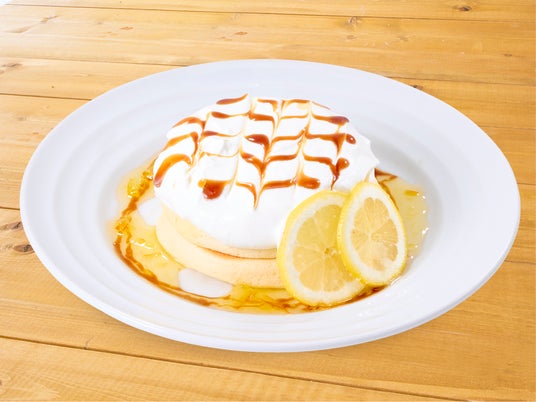 さっぱりとしながらもコクも味わえる「レモンヨーグルトクリームのリコッタパンケーキ」。 (C)中村 介架