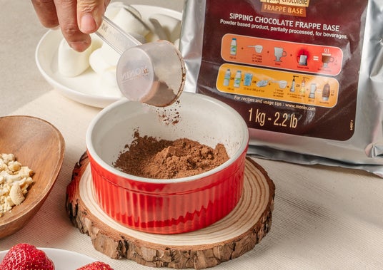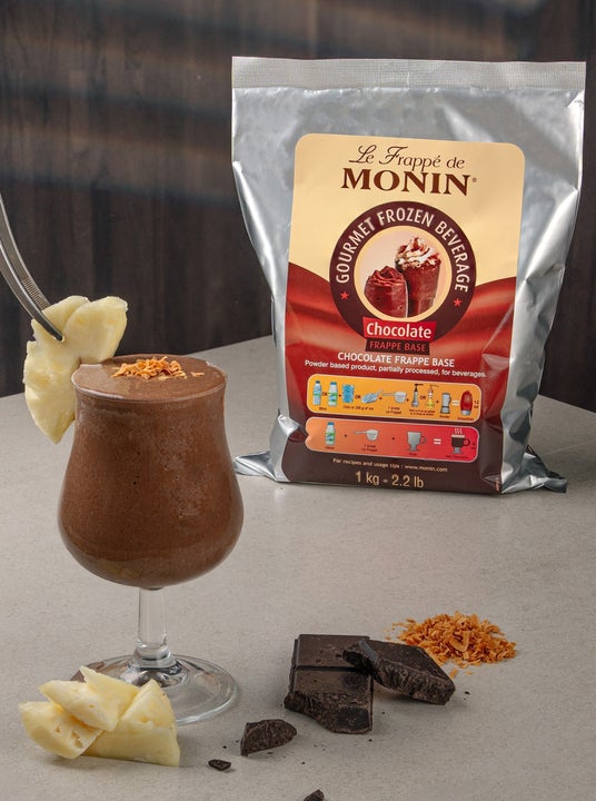 ・フラッペ:フローズンドリンクをなめらかにする「モナン フラッペベース」を使用したチョコレートフラッペをご紹介。食感の向上と風味づけをこれ1つで実現します。