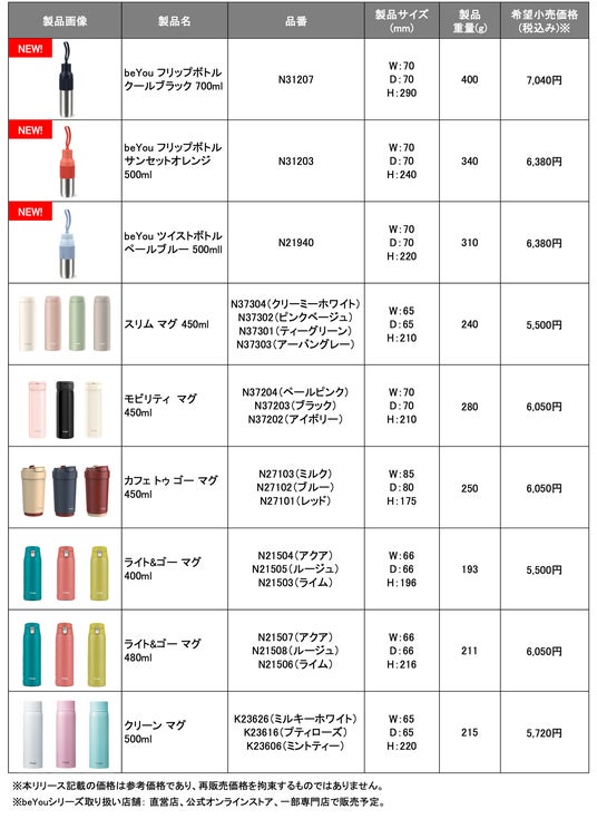 ※ 取り扱い店舗: 直営店、公式オンラインストア、一部専門店で販売予定。