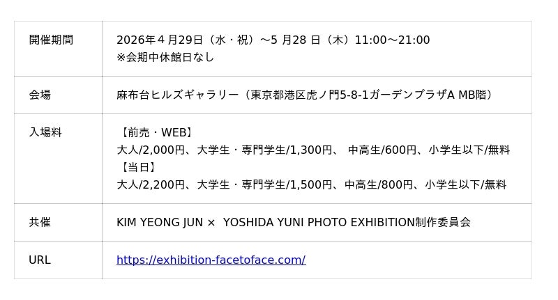 ■「KIM YEONG JUN × YOSHIDA YUNI PHOTO EXHIBITION “Face to face”」開催概要