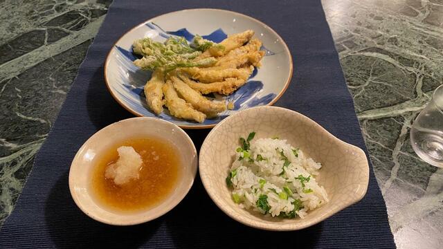 天ぷら(ワカサギとタラの芽)、菜飯。日本酒は初めての「風の森」。ふむ、なかなか美味しいぞ。