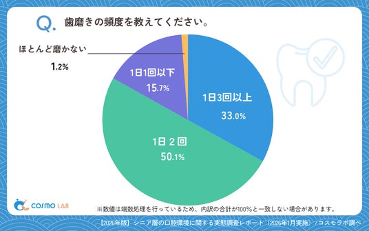 歯磨きの頻度は「1日2回」(50.1%)が最多で、「1日3回以上」(33.0%)も続きました。